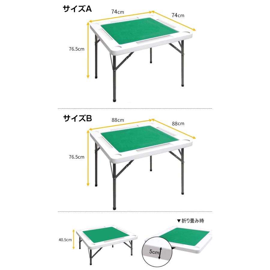 | 商品の特徴 | 麻雀卓 麻雀台 麻雀テーブル 折りたたみ式 収納式 手打ち用。楽天市場】麻雀卓 手打ち麻雀卓 立卓・座卓兼用タイプ。楽天市場】【11%OFFクーポン&P5倍!8月1日限定】麻雀卓 麻雀。#りき&くぅShop麻雀台の出品一覧はこちら※万が一、初期不良と思われる不具合があった場合は、返品交換または返金対応させていただきます。【商品説明】和室でも洋室でも大活躍!高さ2段階の麻雀テーブル登場。72cm or 39cmの2段階に調整OK。椅子に座っても床に座ってもご利用いただけます。サイドテーブル不要。麻雀台にドリンクホルダー付きで置くところに困りません。和室にも洋室にも合うシンプルなデザイン。家庭用としてインテリアに合わせて麻雀卓を設置いただけます。ダイニング、リビング、お座敷など場所を選ばず、いつでも自宅で麻雀を楽しめます。雰囲気に合わせて座布団で囲うか、椅子に座って囲うか、その場で決めていただけます。家庭用、麻雀クラブ、麻雀教室、老人ホームなどに最適です。天版は(高密度ポリエチレンPEマテリアル)製。ハニカム構造で丈夫で軽量なので持ち運びも楽チンです。※麻雀マットは貼っていただく必要があります。収納式の麻雀卓なので不要時はスムーズに折りたたみOK。折りたたみ作業は女性一人でも簡単にできます。◯商品仕様・本体サイズ:(約)88幅cm×奥行88cm×高さ72cm・収納サイズ:(約)幅88cm×奥行88cm×高さ5cm・重量:(約)11kg・高さ調整:2段階・カラー:ホワイト※麻雀牌は別売りです。#りき&くぅShop出品商品の一覧はこちら※ご注意※基本的に送料込みで出品しておりますが、北海道・沖縄・離島にお住いのお客様につきましては、別途送料が必要になります。プロフィール欄の「送料に関するご注意」をご確認ください。ご購入前に必ずメッセージをお願いいたします。管理番号:2090。麻雀卓 手打ち麻雀卓 高さ2段階調整可能 折りたたみ マージャン。麻雀ファイトクラブカードセット。麻雀台セット ばくおん!!。【希少品】麻雀牌 任天堂 菊寿牌。麻雀牌 海外 年代品。全自動麻雀卓センチュリーPAL。麻雀台 ばくおん!!。麻雀牌 黄金牌 ケース付き。【ぶよ】全自動麻雀卓 マツオカ センチュリーNEXT ノーマル枠 Wing。任天堂 麻雀牌 役満 重量牌。ファイナルファンタジー14 FF14 ドマ式 麻雀 未使用。⭐︎【新品】家庭用 麻雀卓 座卓 麻雀テーブル ブラック 黒。麻雀連盟カード早期購入特典連盟カード小島武夫80枚限定!。★僅少★ ミズノ丸一「新昭和」麻雀牌。任天堂 麻雀牌。2・全自動麻雀牌・点棒・その他。アカギ 鷲巣麻雀牌【公式】©福本伸行/竹書房 ★待望の新バージョン。全自動 麻雀牌 センチュリードデカ牌。nekogogoさん 専用。中古 麻雀セット 全自動 牌 33mm ゴールド | ||