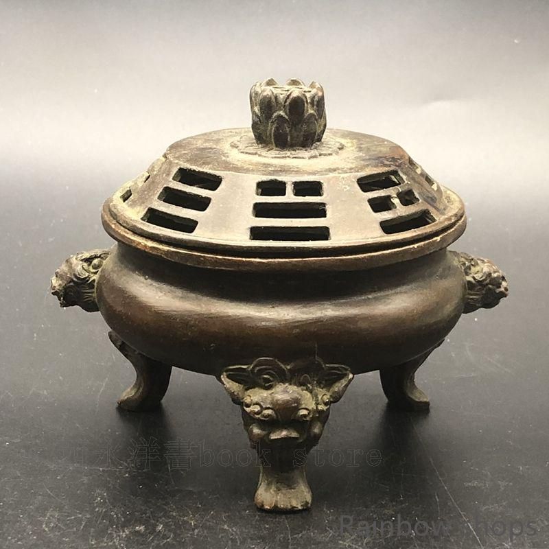 - 美術品・アンティーク・コレクション > 工芸品 > 金色の帝王蓮華の置物香炉 陶磁 香道具 装飾品 工芸品 美術品 置物 新品未使用】銅器 三足双獅頭香炉 蓮華蓋薫香炉 茶道薫香炉 装飾