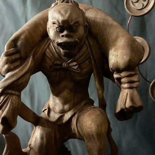 - 美術品・アンティーク・コレクション > 彫刻・オブジェ > 大型 高37cm 仏教工芸品 総楠製 井波彫刻 一刀彫 極上彫 九龍観音菩薩立像 井波彫刻 仏教工芸品 総楠製 極上彫 木彫仏像 風神雷神図一式