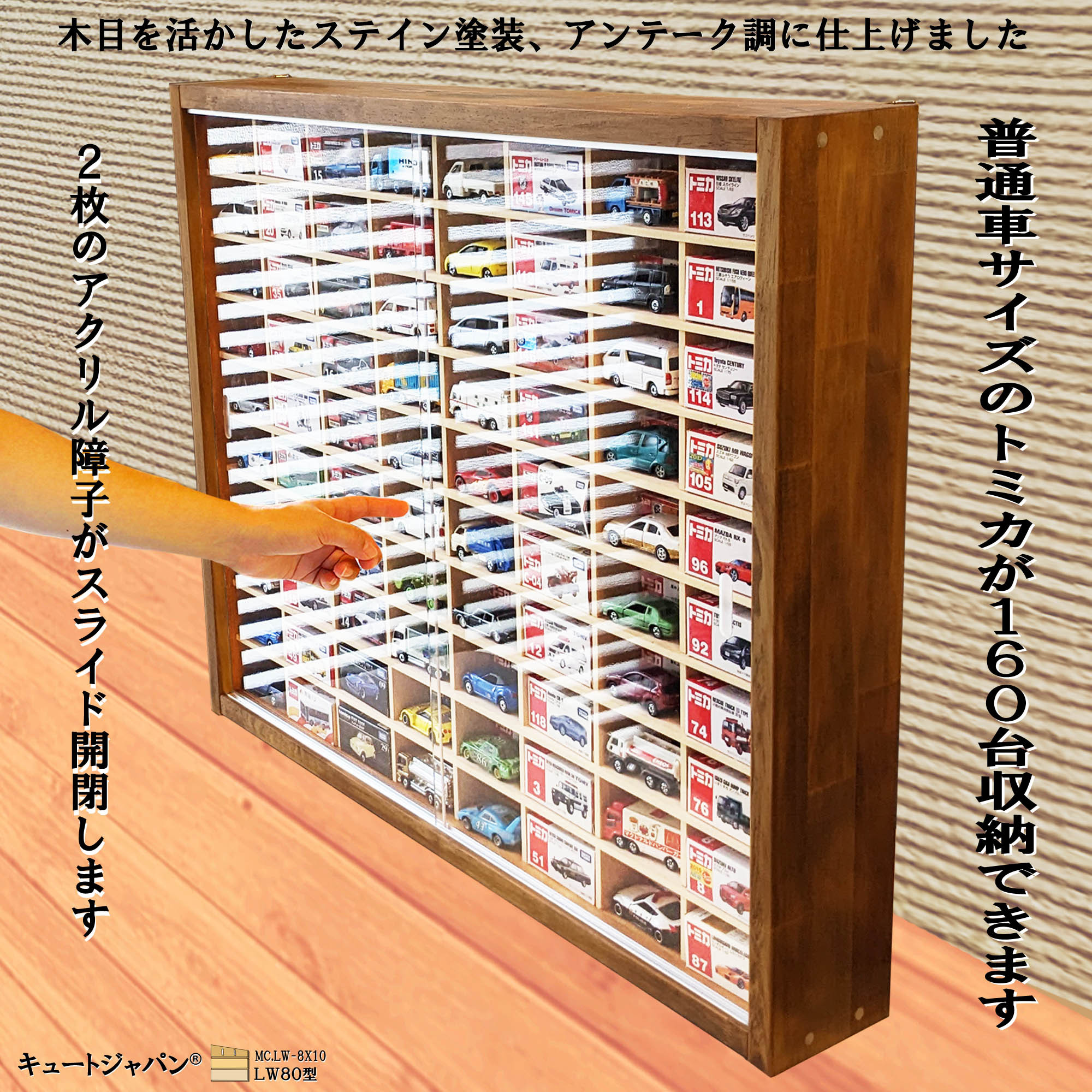 - おもちゃ > ミニカー > 160台収納 トミカケース 80マス アクリル障子付 マホガニ色塗装 日本製 160台収納 アクリル障子付 マホガニ色塗装 日本製 80マス トミカケース